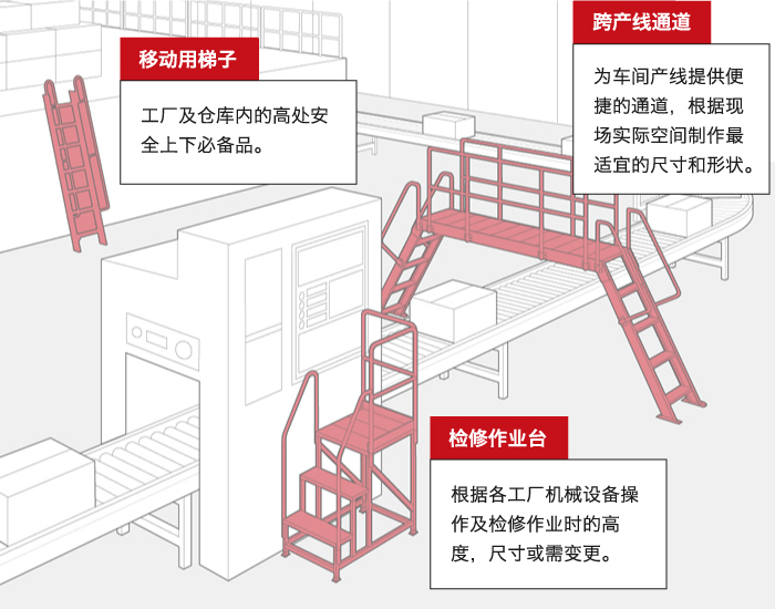 實(shí)現(xiàn)可跨越車間通道和復(fù)雜生產(chǎn)線以達(dá)到安全高效的移動(dòng)和設(shè)備檢修目的。