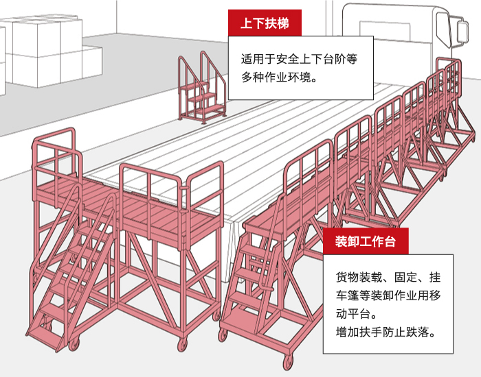 為了保障安全高效的進(jìn)行拖車、油罐汽車等特殊車輛的裝卸貨物工作環(huán)境,改良定制而成的產(chǎn)品。