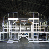 用于檢查維修飛機(jī)尾翼周圍的作業(yè)臺(tái)。多層臺(tái)階的設(shè)計(jì),便于靠近各個(gè)維修定點(diǎn)。