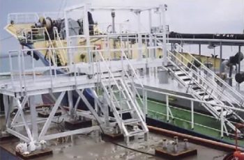 為配合停泊船只的移動(dòng),臺(tái)階和通道可以上下左右滑動(dòng),工人能夠安全上下作業(yè)。