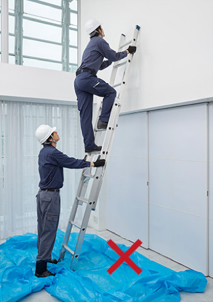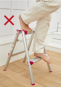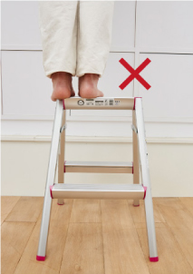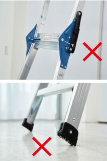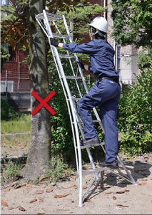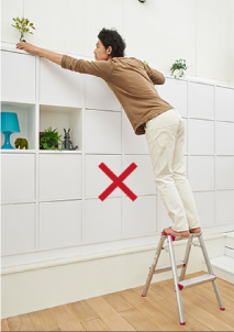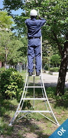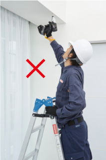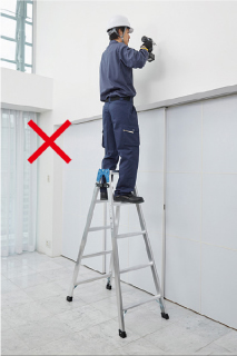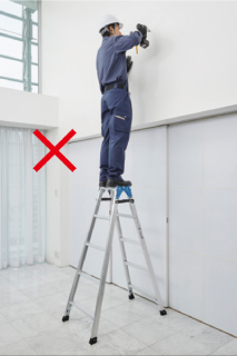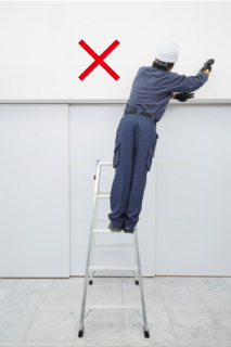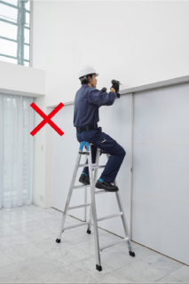 - 在梯子上進(jìn)行作業(yè)時(shí),請站在從天板開始數(shù)第三節(jié)(210cm以下的型號則為第二節(jié))以下的踏板上,身體輕靠天板和上層踏板,在平穩(wěn)的狀態(tài)下操作。