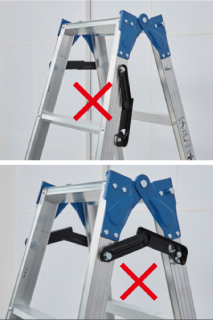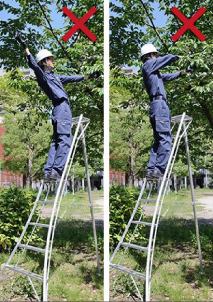 - 在三腳梯上進(jìn)行作業(yè)時(shí),請站在從天板開始數(shù)第四節(jié)(180cm以下的型號則為第三節(jié))以下的踏板上,身體輕靠天板和上層踏板,在平穩(wěn)的狀態(tài)下操作。