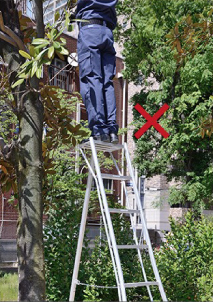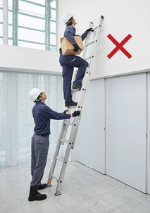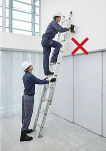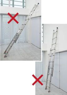 - 將梯子倚靠屋頂?shù)葓鏊鶗r(shí),梯子和建筑物的最佳接觸點(diǎn)為踏板從上往下數(shù)第2~3級的位置。