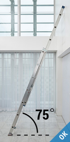 - 梯子的倚靠角度約為75度。請務(wù)必在有人輔助扶穩(wěn)梯子的情況下作業(yè)。